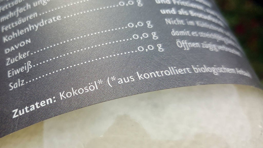 Das Kokosöl von Ölmühle Solling ist nativ. Somit handelt es sich um kaltgepresstes Öl. Für die Bewertung der Qualität ein wichtiger Faktor, da nur die kalte Pressung die vollen gesundheitlichen wie auch geschmacklichen Vorzüge von Kokosöl mit sich bringt. Das lässt sich auch direkt vom Etikett des Glases ablesen.